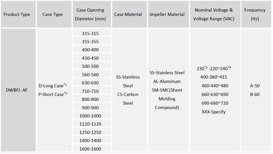Type DWBFJ-AF axial fan has long or short stainless steel or carbon steel aterial case fitted with stainless steel, aluminum or sheet molding ompound (SMC) which is also alled glass-fiber reinforced polyester (GRP) aterial impeller. The fan s driven directly by an ATEX r IECEx certified motor.