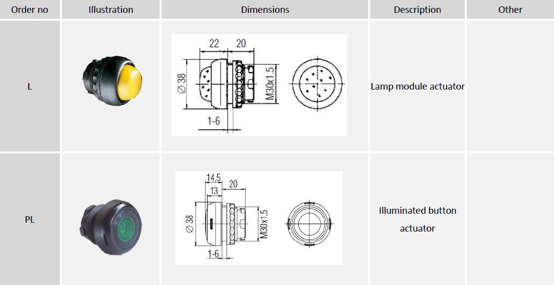 A large number of variants and versions of actuating elementsare available for the DW02 series Indication Lamp. All actuating elementsare made of high-quality thermoplastic and conform to the IP 66 type ofprotection.
