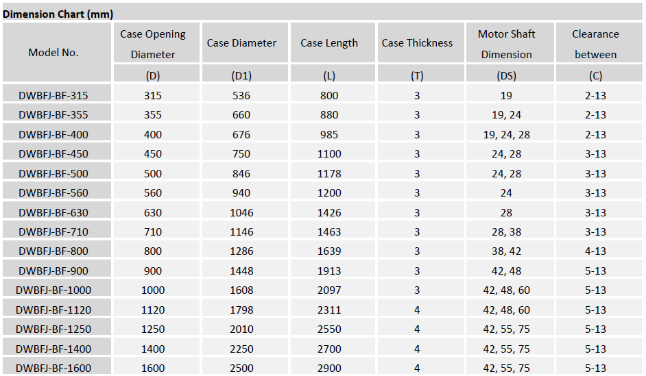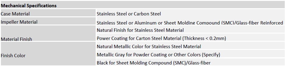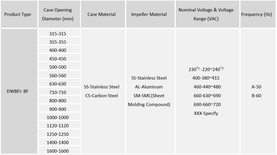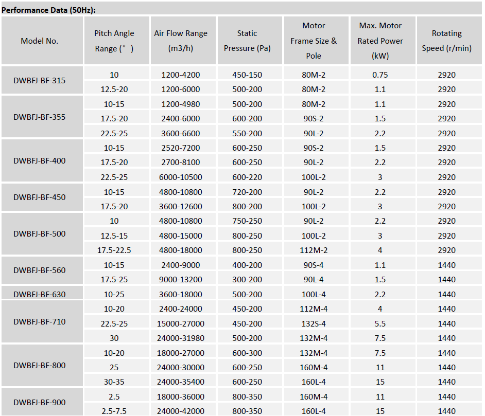 It specially applies to Oil & Gas, Offshore Platform, Chemical,Petrochemical, Refinery and Marine Industries etc. Type DWBFJ-BF bifurcated fan has stainless steel or carbon steel material case fitted with stainless steel, aluminum or sheet molding compound (SMC) which is