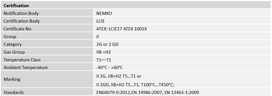 Type DWBFJ-BF bifurcated fan is designed according to EN 14986 and EN 13463-1 standards. The product is certified for installation in Zone 1 and Zone 2 for gas environment, Zone 21 and Zone 22 for dust environment.