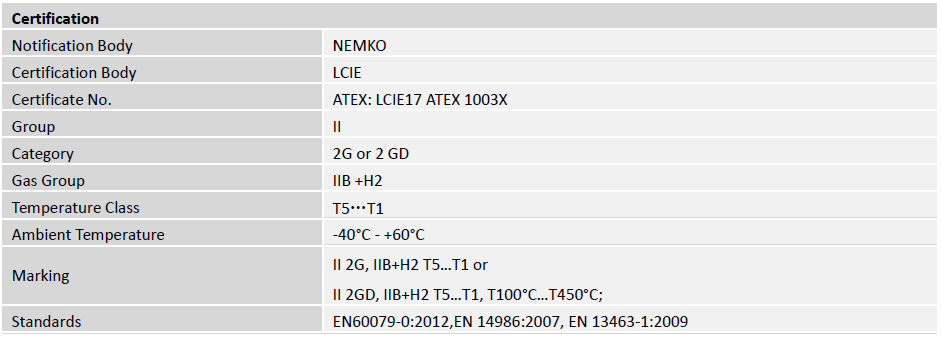 The Ex d motors are equipped with PTC thermistors for optimum motor protection.