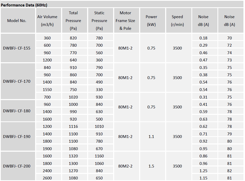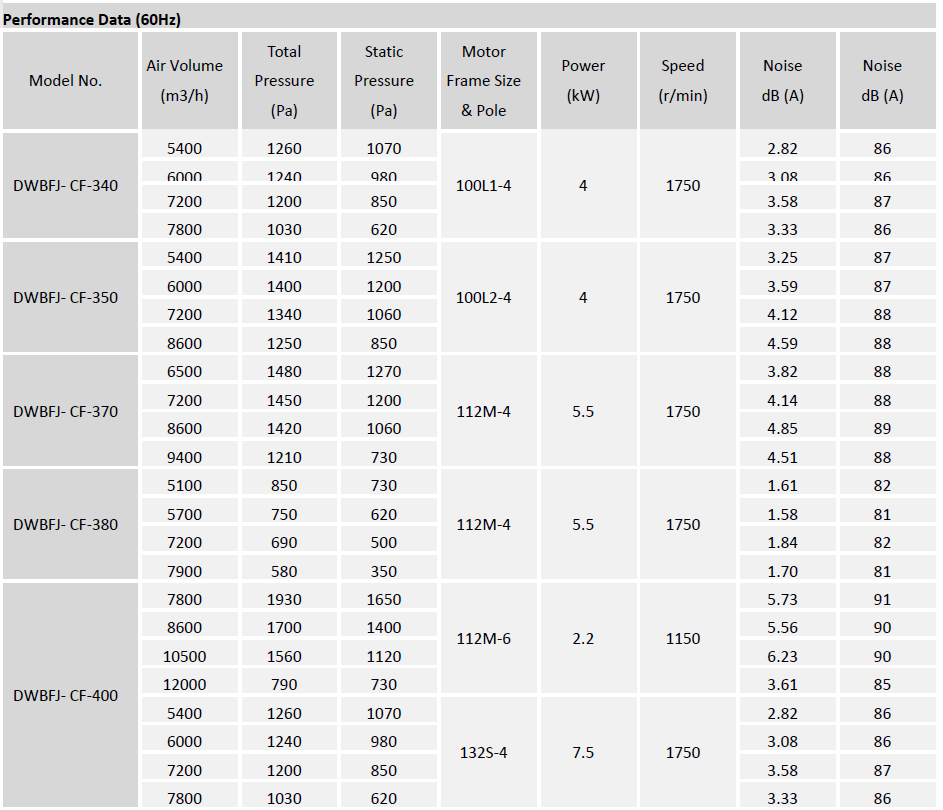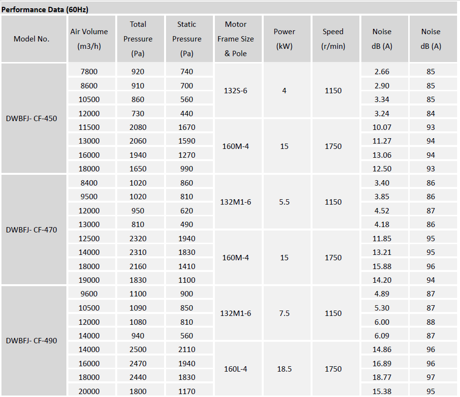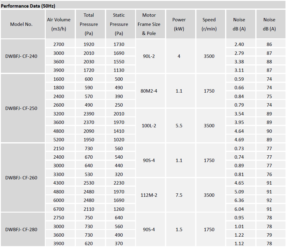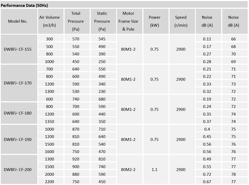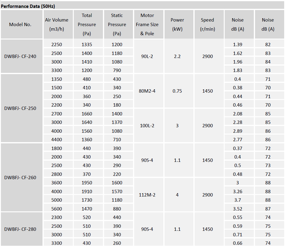 Type DWBFJ-CF centrifugal fan is typically used for general HVAC (exhausting, filtration, air return and supply etc.) and industrial applications where large volumes of clean air are required at low to