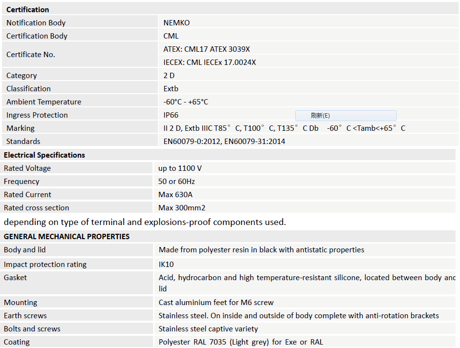 EJT*-A Series enclosures for Dust explosion proof power distribution, switchgear and control unit combinations with terminal boxes in the type of protection "Protection by Enclosure tb".