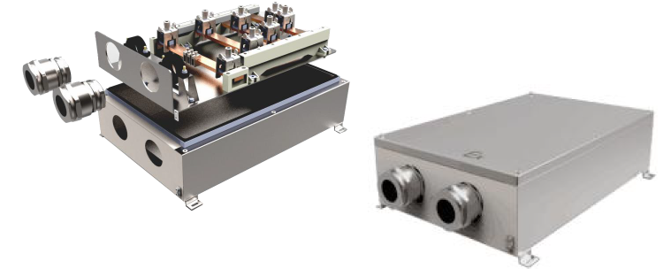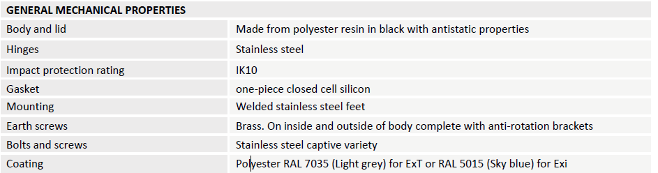 These enclosures are primarily used with the function of cable termination unions, with terminals for derivation or change section cables, for joining long distance cables to terminals strips of motors and/or end users with entry terminals of lower section.