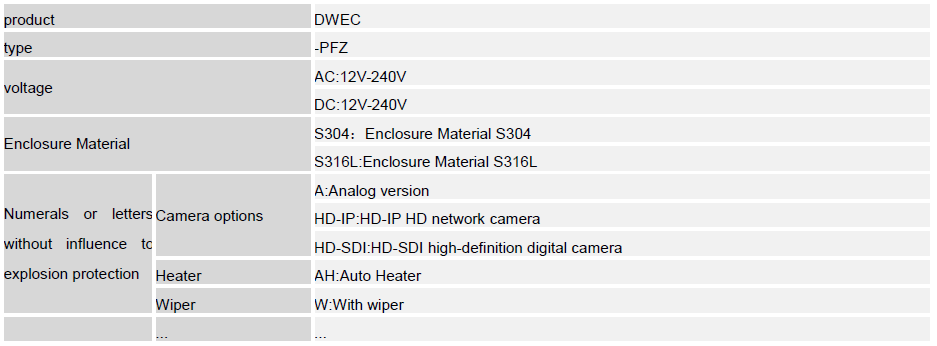 The DWEC series Explosion-Proof fixed camera station is protected by flameproof enclosure “ d” , it consists of cylinder assembly, front cover, rear cover and inspection window, it’ s applicable for both explosive gas and dust atmosphere. The enclosure is made of S304 or S316L stainless steel with electro-polish finish. The inspection window mounted in the front cover the is made of 10mm thick toughened glass .Within the pressure-resistant enclosure, various camera modules and lenses reflecting different technical specifications.Accessory components such as PTC heating elements, miniature fans, NIR LED, lighting devices, mechanical components and clamps made of aluminum are optional. Criteria for selecting the camera module are, for example, trans-mission technology (digital or analog), control functions (IR cut filter, iris, focus), light sensitivity, angle of view, object distance, resolution, optical zoom range, frame rate, or transmission delay.