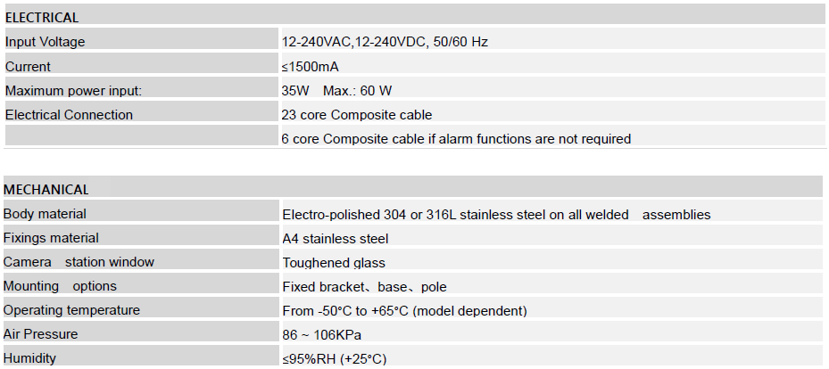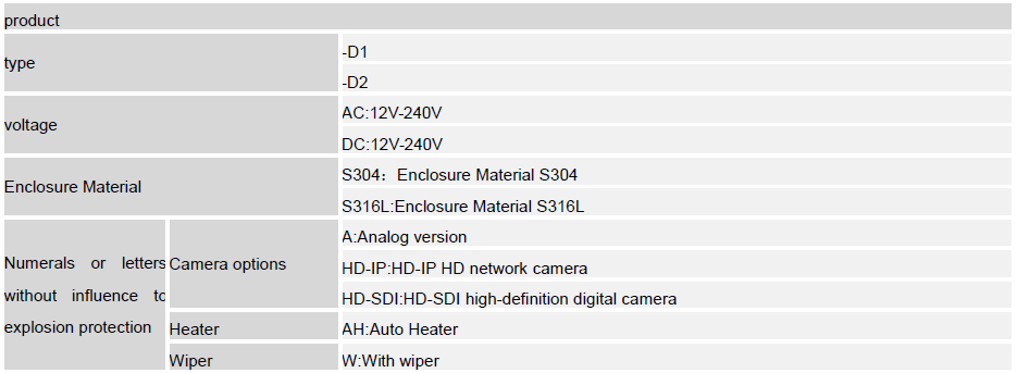 The DWEC series megapixels network hd series explosion-proof quick spherical camera consists of two parts;Outside of the explosion-proof cover parts, cameras.External explosion protection shield by spherical camera shield and cable into the device of two parts.Rapid spherical explosion-proof camera cover assembly is composed of shell parts, Windows components;Cable entry device by glue ontology, composite cables,compression screw, sealing ring and rubber composition.Shell using 304 or 316L steel structure.