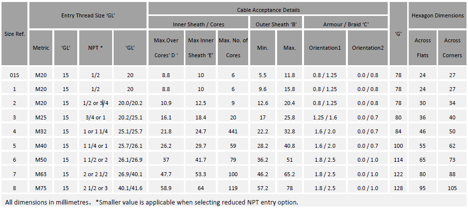 ? For use with single wire armour ‘W’, wire braid ‘X’ and steel tape armour ‘Z’ elastomer and plastic insulated cables.