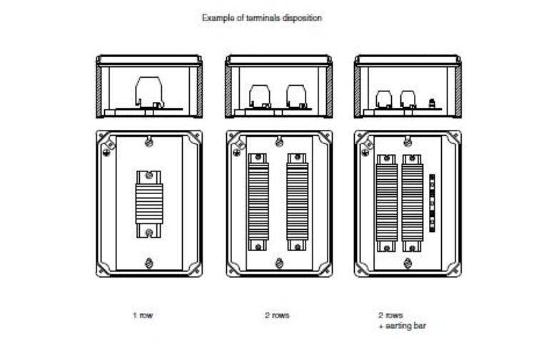 根據客戶的要求,在證書使用的限制方面,對于機箱類型的最大端子、最大孔、最小距離和耗散功率,終端可以與所描述的不同位置安裝。